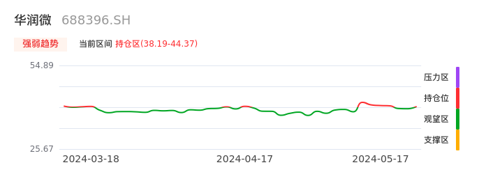 我们来看一下该股的九方特色指标强弱趋势的情况:华润微近日从观望区上穿到持仓区。股价短期站稳多头区域,上升动能仍较为充足,可积极关注。后续重点关注上方压力位:44.37元是否能突破上攻。