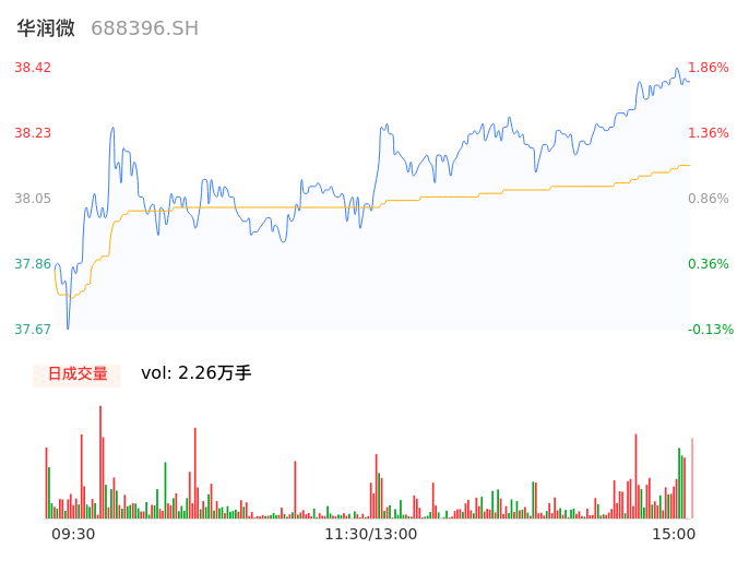 05月17日,华润微收报38.40,股价涨幅1.80%,成交金额8607.56万元,换手率0.17%。