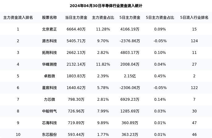 从主力资金流向来看,半导体行业今日主力资金流入100.39亿元,在所有申万二级行业中排名:100/131。