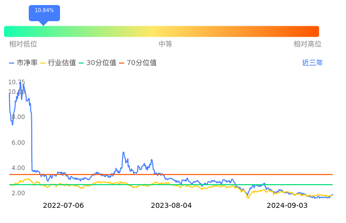 凌云光当前市净率PB为1.97,在所属的专用设备中,市净率PB排95,前五名分别为长荣股份市净率0.71、创力集团市净率0.76、卓郎智能市净率0.77、上海机电市净率0.83、豪森智能市净率0.88。凌云光当前市净率PB为1.97,超过近3年10.84%的历史数据。