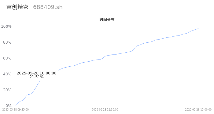 688409富创精密2025年05月28日成交1.79万手,成交金额9019.89万,相较昨日缩量1062手,换手率1.01%,成交清淡。