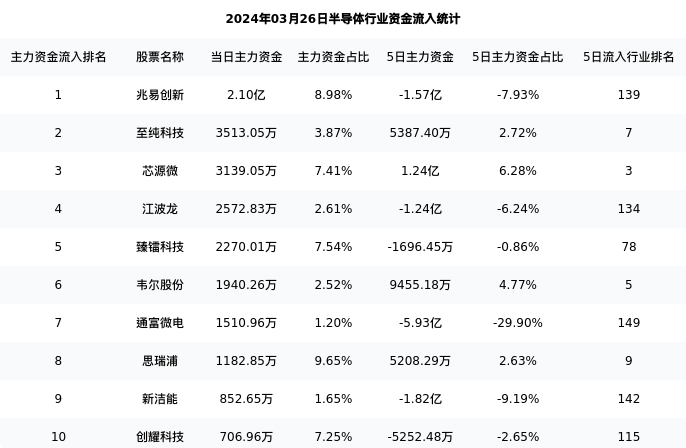 从主力资金流向来看,半导体行业今日主力资金流入118.23亿元,在所有申万二级行业中排名:99/131。