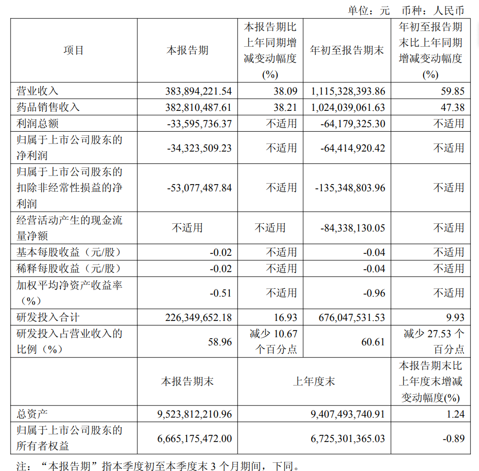 《科创板日报》11月14日讯(记者 史士云)13日,诺诚健华(688428.SH)披露2025年第三季度业绩报,其当季度实现营收3.83亿元,同比增长38.09%,净利润亏损3432.35万元,扣非后净利润亏损5307.75万元。