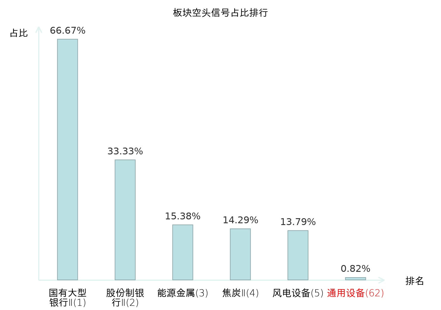 全市场所有行业板块中主力空头信号占比排名中,国有大型银行Ⅱ板块位居第一。风电设备板块名次提升最快,较昨日上升126位。
