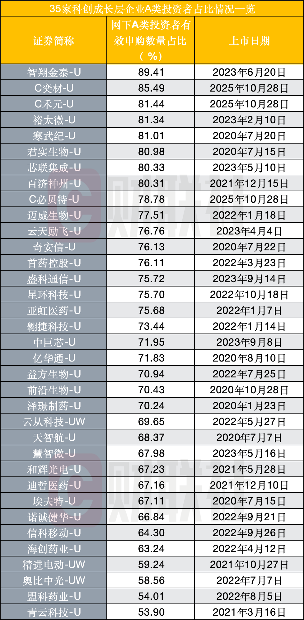 从市场参与端来看,网下投资者对成长层企业的关注度持续升温,尤其是A类投资者,对未盈利企业展现出显著的长期看好态势。这一情绪背后,既源于板块聚焦的赛道潜力,也得益于科创板差异化的监管安排:通过股票简称加“U”标识、专项风险揭示等制度设计,在支持创新企业上市融资的同时,有效防控市场风险,实现了创新支持与风险管控的平衡。