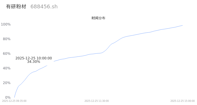 688456有研粉材2025年12月25日成交17.48万手,成交金额11.96亿,相较昨日放量8.15万手,换手率16.86%,成交活跃。