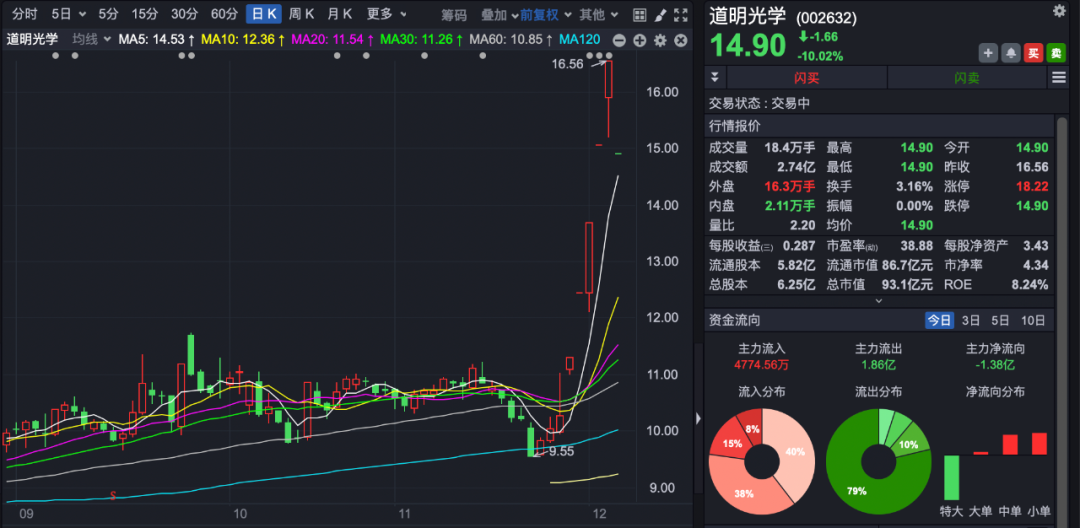 近期获得市场高度关注的AI手机板块,12月4日震荡回调,道明光学跌停,东田微奥尼电子美芯晟弘信电子等跟跌。