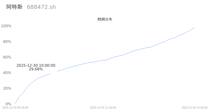 根据成交分布分析,该股票当天缩量成交,成交清淡。时间上看,早盘前半小时成交量占据当天总成交量的29.68%;价格上看,成交呈现中间峰。成交分布分析主要研究股票成交的分布特性,不具有预测功能,请知悉。