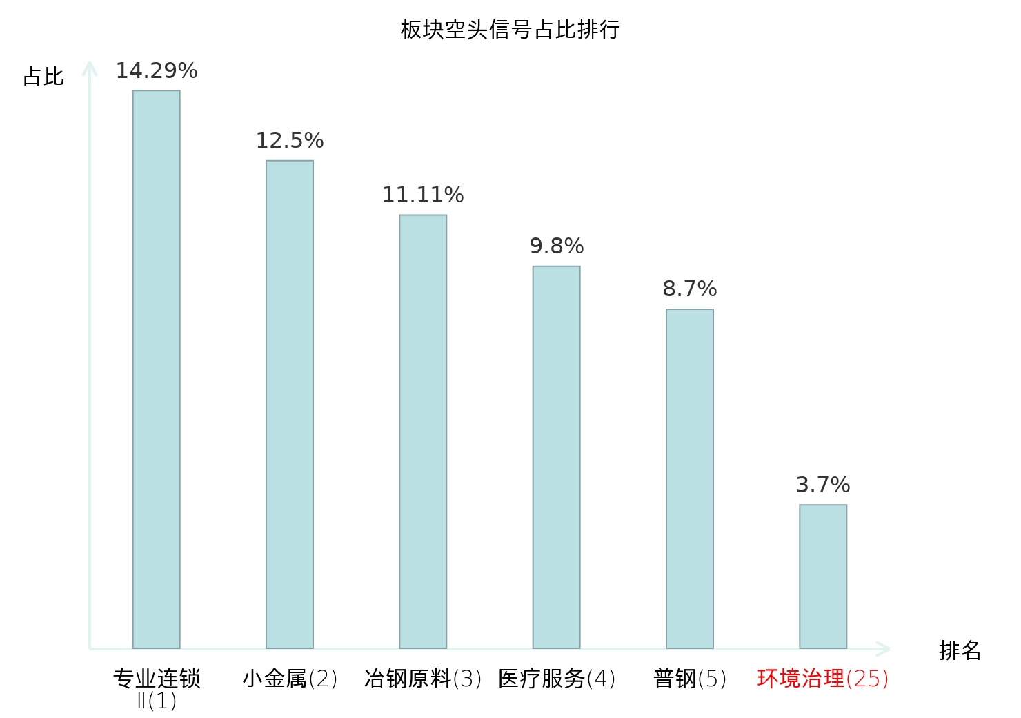 全市场所有行业板块中主力空头信号占比排名中,专业连锁Ⅱ板块位居第一。军工电子Ⅱ板块名次提升最快,较昨日上升106位。