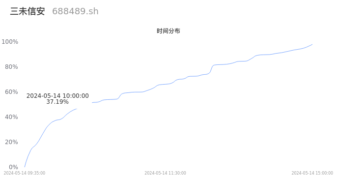 688489三未信安2024年05月14日成交6774手,成交金额1943.81万元,相较昨日缩量7950手,换手率1.37%,成交清淡。