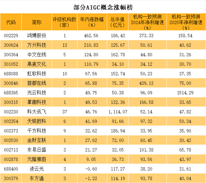 部分个股未来业绩有望持续高增长。根据机构一致预测,科大讯飞、千方科技、鸿博股份等个股明后两年净利增速均超30%。其中,鸿博股份、万兴科技、东方通、天娱数科、首都在线等个股净利增速均超40%。从年内表现来看,鸿博股份、万兴科技、中文在线、果麦文化等个股均涨超100%。