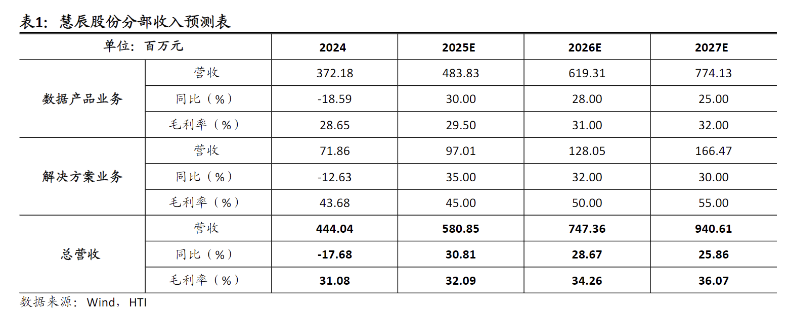 公司所处行业均处于高速增长期。数据分析:2024年12月国家发展改革委等部门发布《关于促进数据产业高质量发展的指导意见》,明确到2029年数据产业规模年均复合增长率超过15%;人工智能:工信部等六部门联合印发的《算力基础设施高质量发展行动计划》,明确将稳步提升算力综合供给能力,到2025年,我国智能算力在总算力中的占比将提升至35%,增速将快于平均增速。我们认为,公司主业,即数据分析业务有望伴随数据要素市场一同快速增长,而公司对AI的重点投入,又有望给公司带来另一快速增长的业务极。