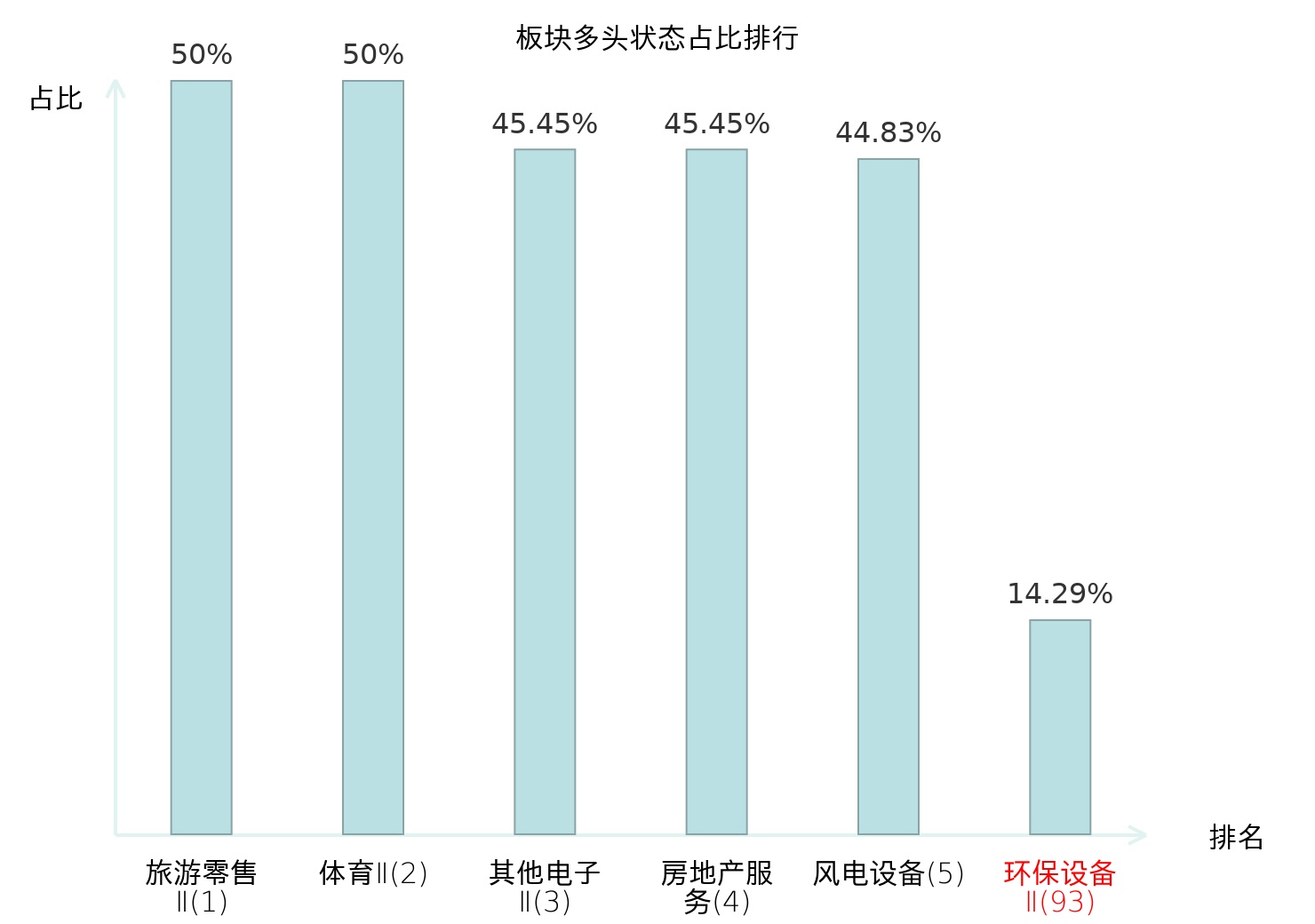 全市场所有行业板块中主力多头状态占比排名中,旅游零售Ⅱ板块位居第一。其他家电Ⅱ板块名次提升最快,较昨日上升112位。