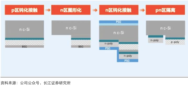 爱旭创新性的在BC电池上使用了两步法制备p、n区隧穿层 |