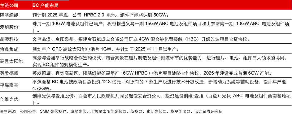 主链公司加速布局BC产能 |