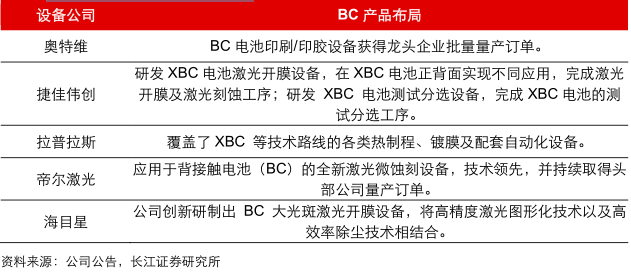 设备公司纷纷推出BC设备产品 |