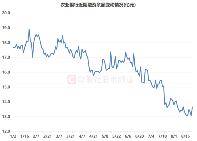 注:农业银行近期融资余额变动情况(截至8月25日数据)