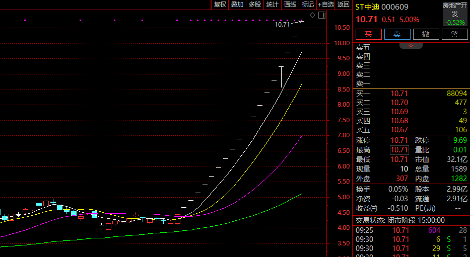因股价波动较大,已连收19个涨停板的ST中迪(000609)明日起停牌核查!