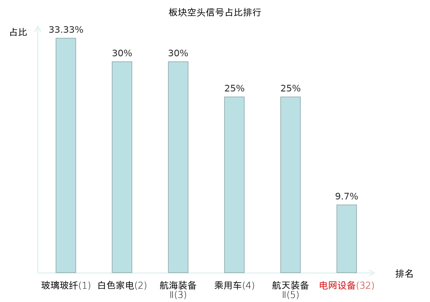 全市场所有行业板块中主力空头信号占比排名中,玻璃玻纤板块位居第一。工程机械板块名次提升最快,较昨日上升108位。