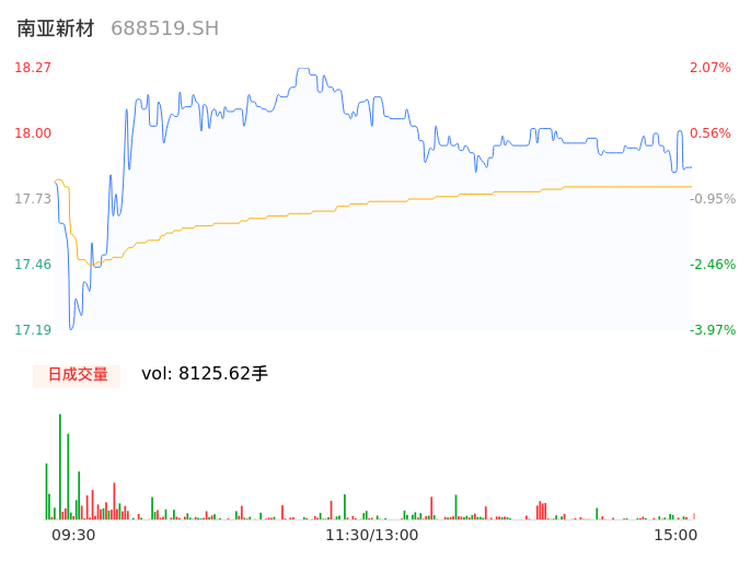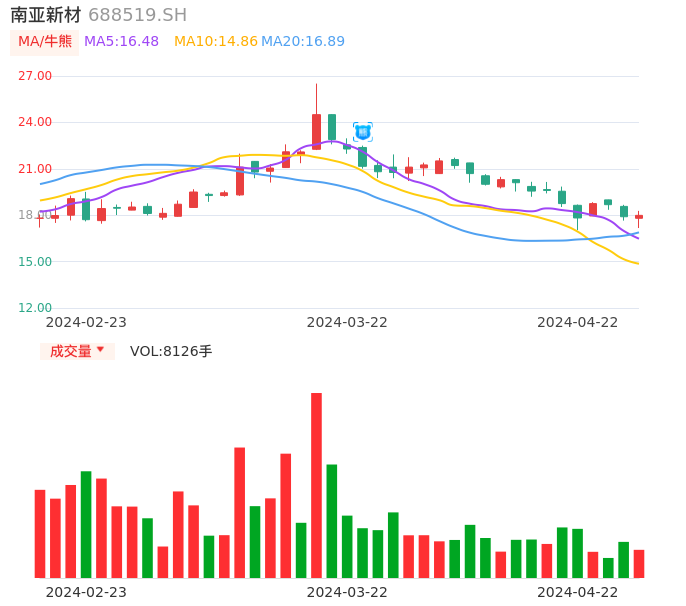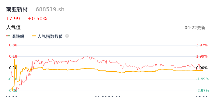 04月22日,南亚新材收报17.99,股价涨幅0.50%,成交金额1445.01万元,换手率0.35%。