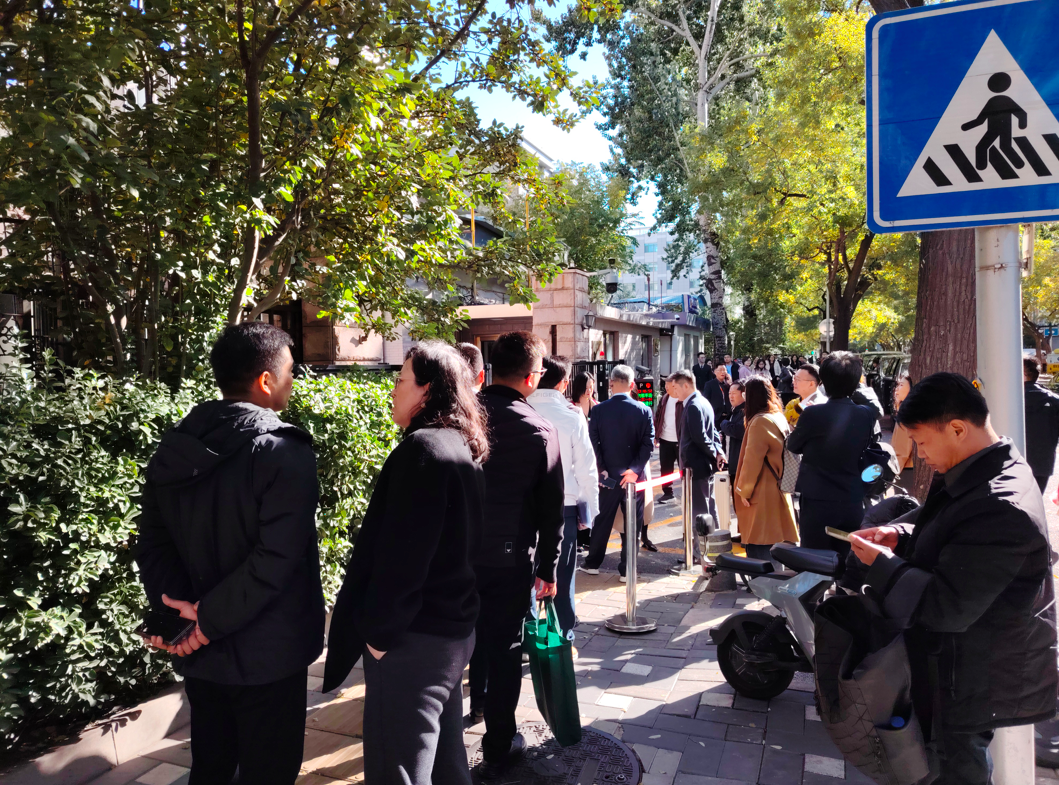 企业队伍中不乏熟面孔,有代表人士已连续三天出现在排队人群里,此前出现过的两位欧美面孔再度现身,阿斯利康(中国)副总裁黄彬也在其中,依旧还是那条亮眼的红围巾,“懂流量”的他与身旁同事并肩而立,“三人谈判小组”在场外大门口拍照留念,定格这一特殊时刻。