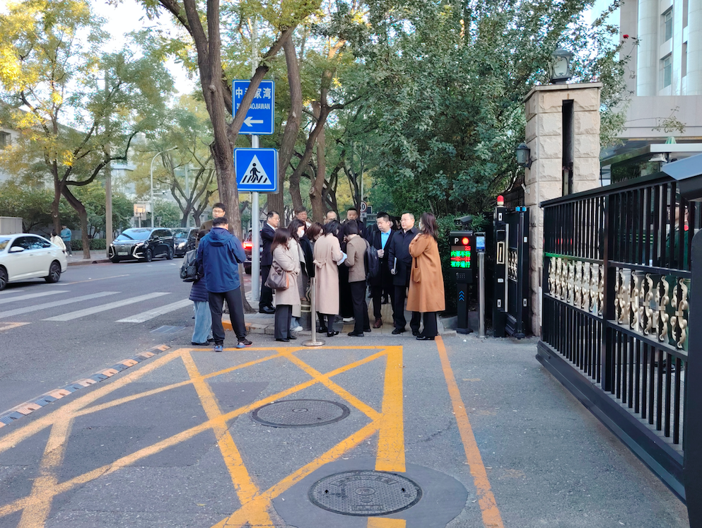 老时间、老地点,谈判场外起初只有零星几位企业代表静候。掐着临近七点五十的时间点,不少企业人士突然从各式车辆中鱼贯而出,原本冷清的场外瞬间热闹起来。