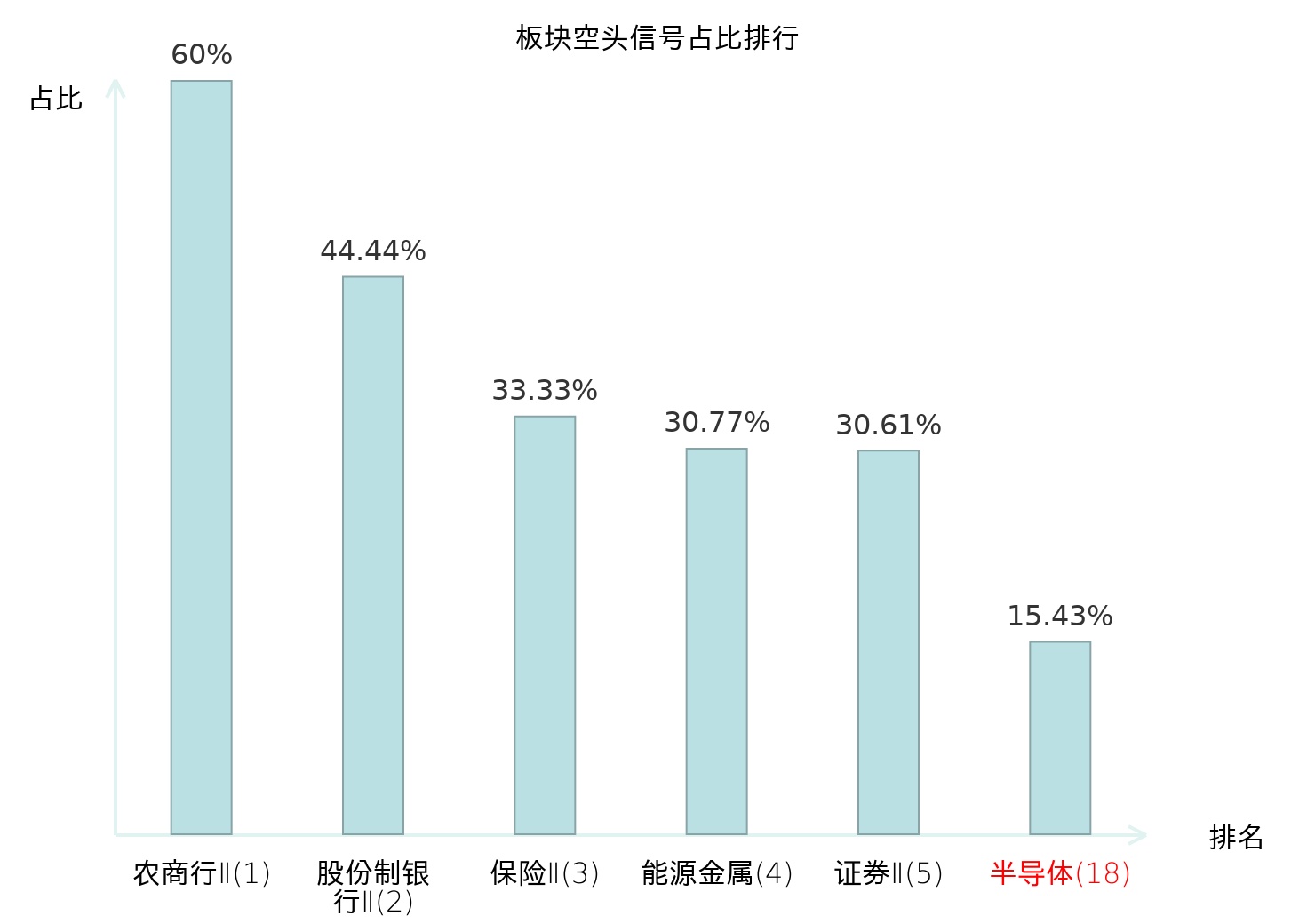 全市场所有行业板块中主力空头信号占比排名中,农商行Ⅱ板块位居第一。证券Ⅱ板块名次提升最快,较昨日上升119位。