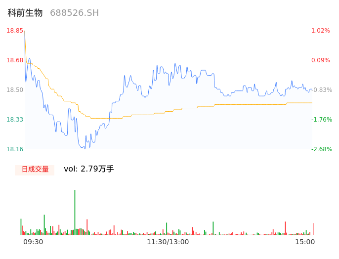 05月07日,科前生物收报18.52,股价涨幅-0.75%,成交金额5143.21万元,换手率0.60%。
