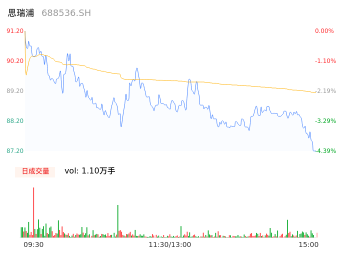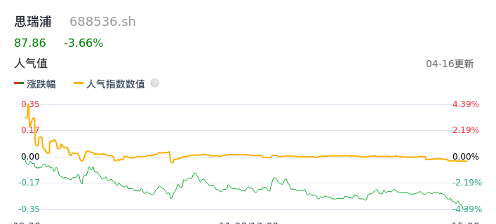 04月16日,思瑞浦收报87.86,股价涨幅-3.66%,成交金额9798.25万元,换手率0.91%。