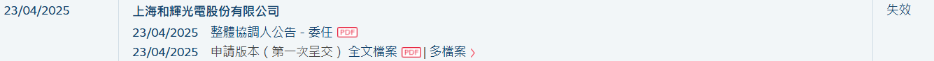 智通财经APP获悉,上海和辉光电股份有限公司(简称:和辉光电,688538.SH)于4月23日所递交的港股招股书满6个月,于10月23日失效,递表时中金公司为独家保荐人。