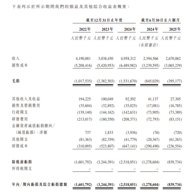 财务方面,于2022年度、2023年度、2024年度、2025年度截至6月30日止六个月,和辉光电收入分别约为41.91亿元、30.38亿元、49.58亿元、26.70人民币;同期,年内亏损及综合亏损总额分别约为16.02亿元、32.44亿元、25.18亿元、8.40亿人民币。