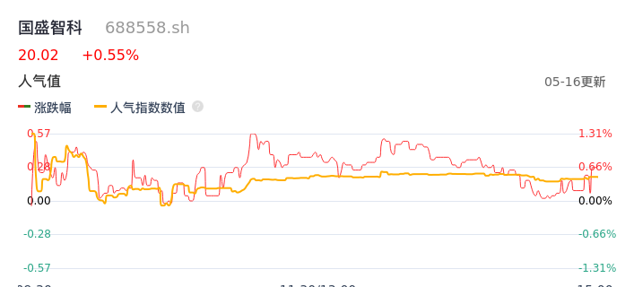 05月16日,国盛智科收报20.02,股价涨幅0.55%,成交金额931.55万元,换手率0.35%。