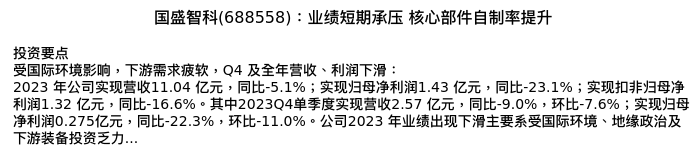 值得注意的是:2024年04月东吴证券的周尔双/罗悦分析师,首次发布关于国盛智科的研究报告,标题为:国盛智科(688558):业绩短期承压 核心部件自制率提升。
