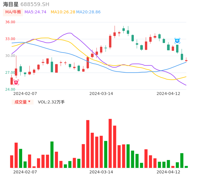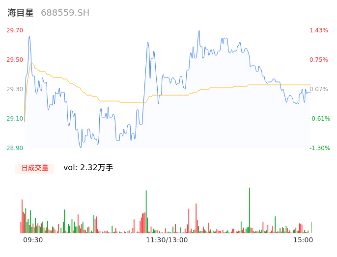 04月12日,海目星收报29.20,股价涨幅-0.27%,成交金额6796.65万元,换手率1.14%。