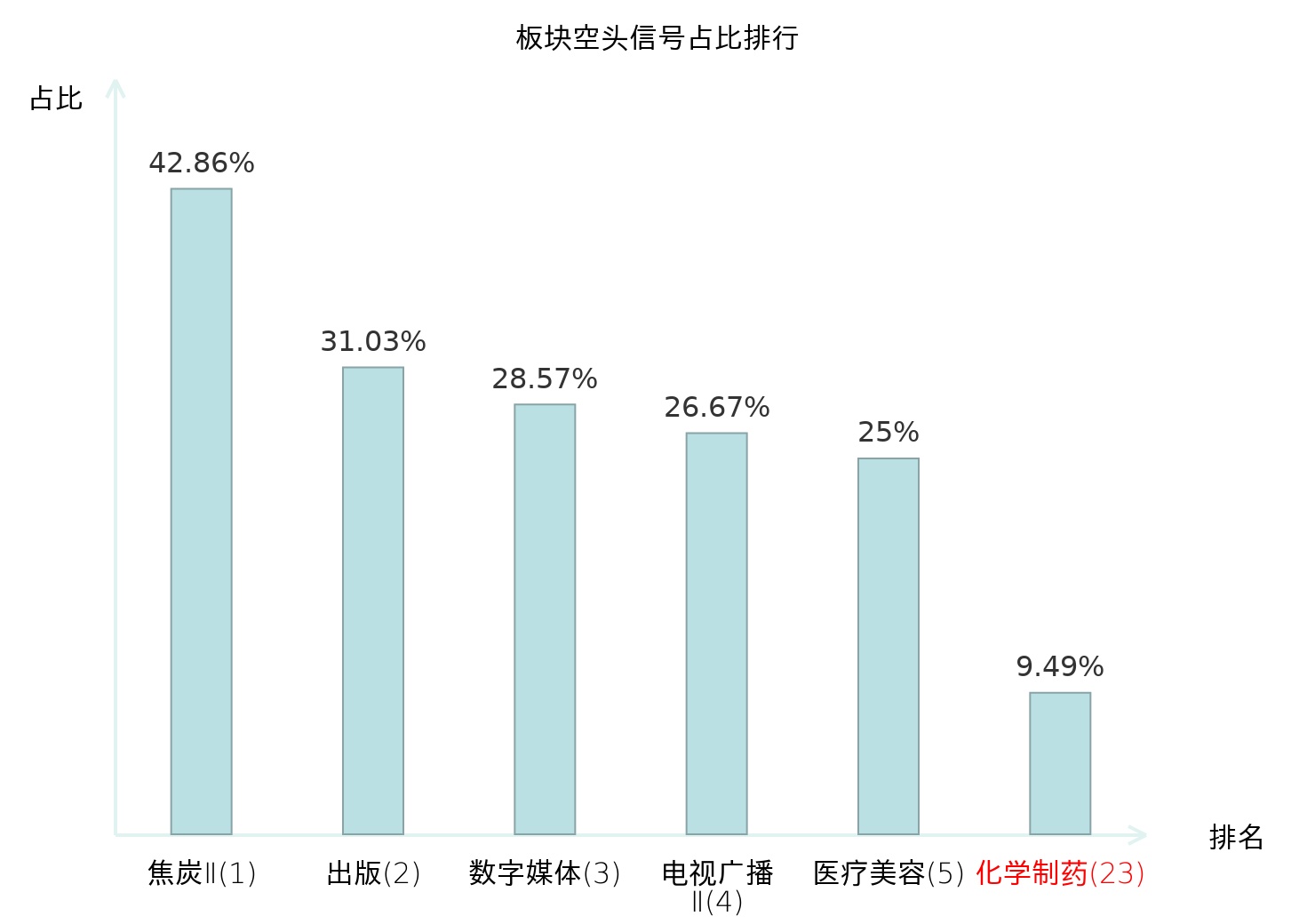 全市场所有行业板块中主力空头信号占比排名中,焦炭Ⅱ板块位居第一。焦炭Ⅱ板块名次提升最快,较昨日上升118位。