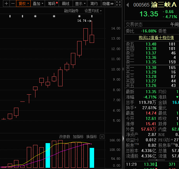 人气牛股渝三峡A早盘调整
