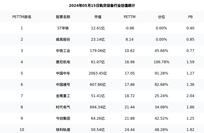 从估值角度看:铁科轨道最新市盈率PETTM为24.44,在行业内排名9/31,处于48.28分位。