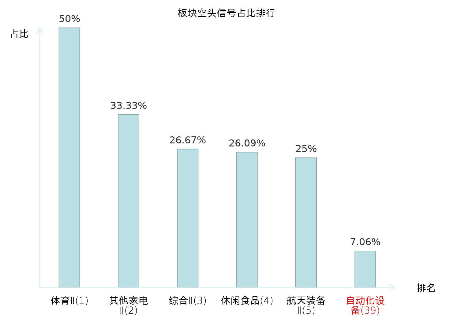 全市场所有行业板块中主力空头信号占比排名中,体育Ⅱ板块位居第一。综合Ⅱ板块名次提升最快,较昨日上升113位。