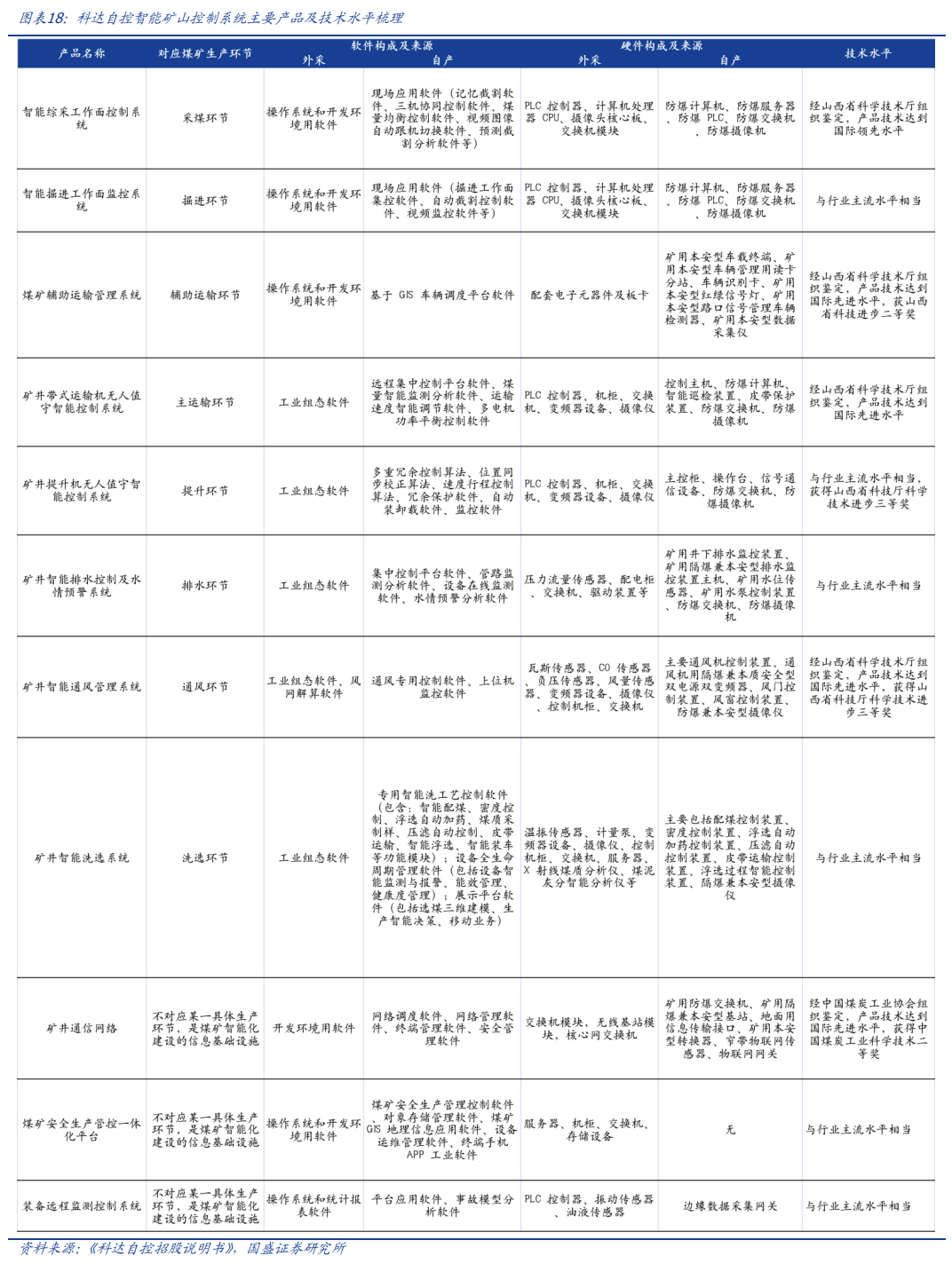 北交所智慧矿山第一股。山西科达自控成立于2000年11月,总部位于山西省太原市,法定代表人付国军。公司2021年11月北交所上市,被称为“北交所智慧矿山第一股”。公司主营业务是应用工业互联网技术体系,主要服务于智慧矿山、“物联网”和智慧市政三大领域。其中在智慧矿山领域,公司自主研发的机器人上榜国家矿山安全监察局公布的“矿山领域机器人典型应用场景名单”,参与的科技部重点研发项目“复杂地质条件煤矿辅助运输机器人”通过综合绩效评价,攻克了煤矿井下辅助运输系统高精度导航定位等关键技术,研发了煤矿辅助运输机器人系统,对提升煤炭开发效率和智能化水平具有重要意义。