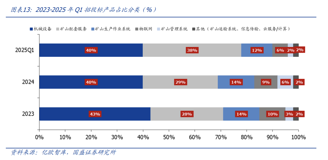 下游:主要应用于各类矿山场景,从矿山类型来看,矿山机器人主要应用于煤矿、金属矿和非金属矿。根据国家矿山安全监察局安全基础司、工业和信息化部装备工业一司联合遴选的66个矿山领域机器人典型应用场景实例,其中煤矿场景共有55个,占据绝大多数份额;非煤矿案例11个,其中有色金属案例5个,黑色金属案例3个,其他非金属矿案例1个。