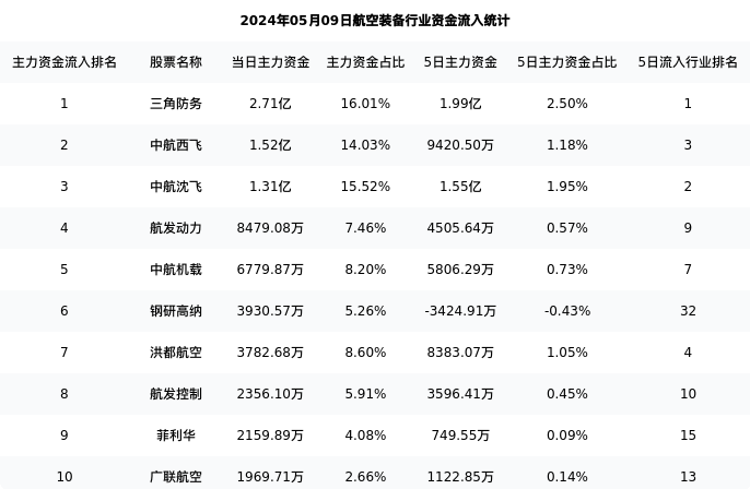 从主力资金流向来看,航空装备行业今日主力资金流入73.43亿元,在所有申万二级行业中排名:69/131。
