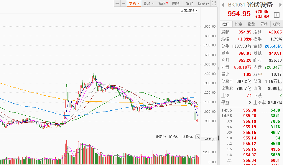 事件驱动:消息面上,根据TrendForce集邦咨询最新调查,中国政策刺激光伏产业整体需求,组件供给出现紧张气氛,预期2025年三月和四月的需求将出现小高峰,可能顺势带动第二季产业链价格上升。光伏概念股展开反弹,欧晶科技涨停,海泰新能、海优新材、固德威、锦浪科技、德业股份、上能电气、宇邦新材、金博股份等多股涨超5%。