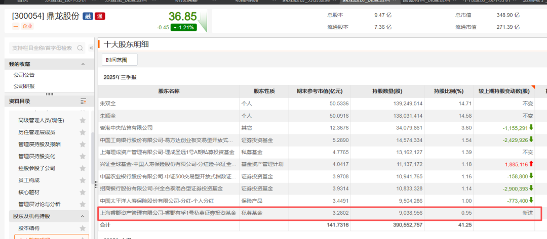 鼎龙股份近期发布的三季报显示,截至三季度末,董承非管理的睿郡有孚1号私募证券投资基金新进该公司前十大流通股股东名单,期末持股数量为903.9万股,期末持股市值高达3.28亿元。
