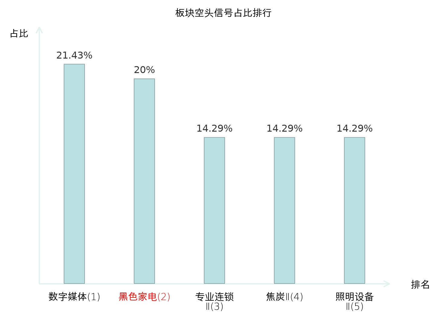 全市场所有行业板块中主力空头信号占比排名中,数字媒体板块位居第一。装修装饰Ⅱ板块名次提升最快,较昨日上升110位。