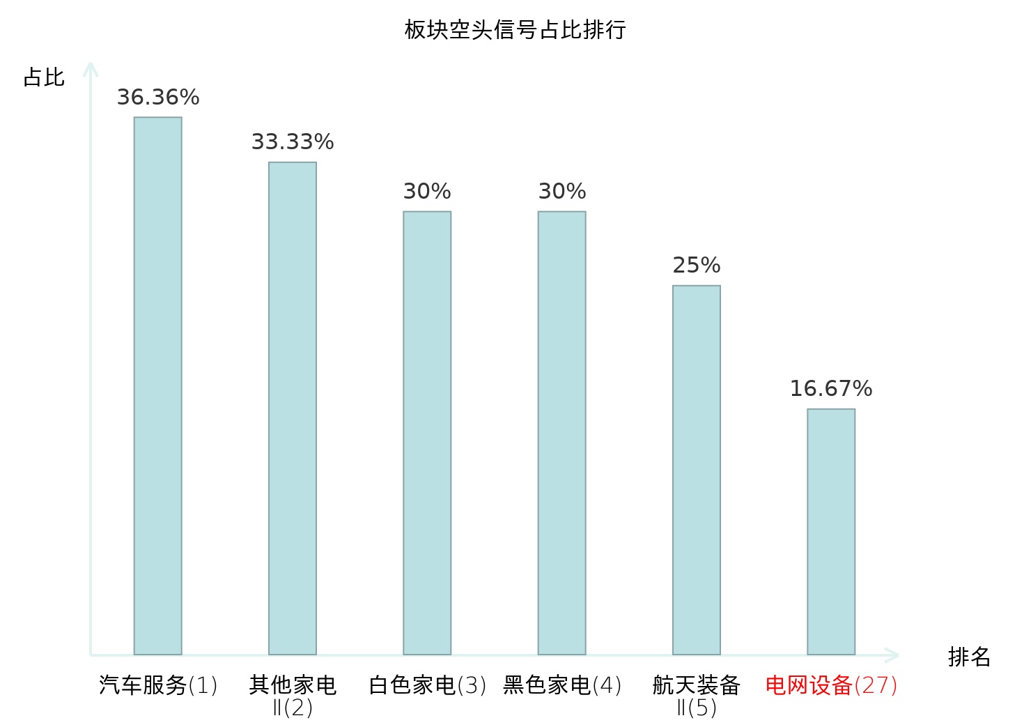 全市场所有行业板块中主力空头信号占比排名中,汽车服务板块位居第一。汽车服务板块名次提升最快,较昨日上升115位。