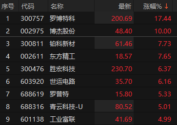 上证报中国证券网讯 8月13日午后,英伟达概念股震荡走强,截至13时05分,博杰股份涨停,罗博特科涨逾17%,铂科新材东方精工涨逾7%,胜宏科技世运电路涨逾6%,罗普特等跟涨。