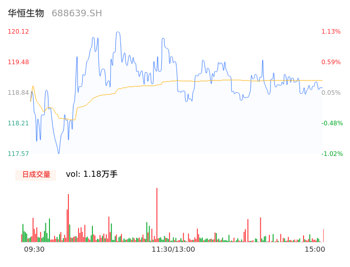 05月14日,华恒生物收报119.26,股价涨幅0.40%,成交金额1.40亿元,换手率0.75%。