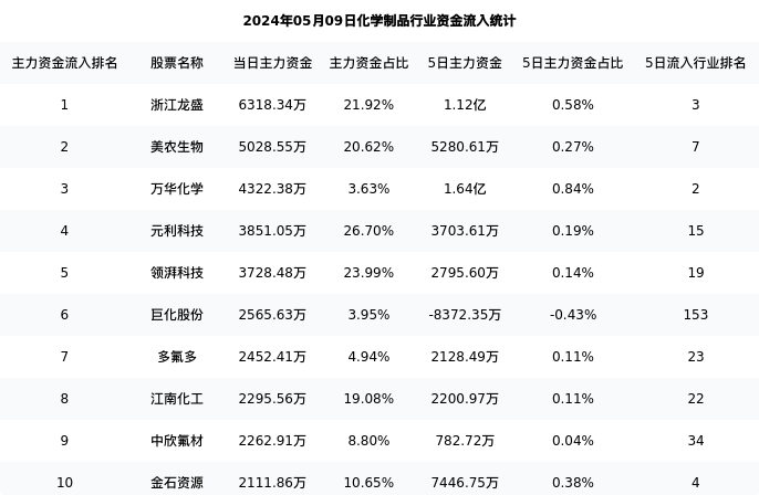 从主力资金流向来看,化学制品行业今日主力资金流入90.04亿元,在所有申万二级行业中排名:13/131。