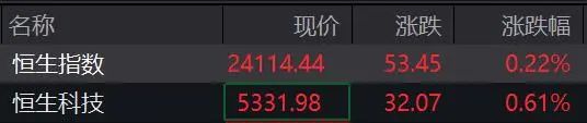港股开盘上涨,香港恒生指数高开0.19%,恒生科技指数高开0.27%,盘中恒生指数一度转为下跌。截至发稿,恒生指数、恒生科技指数均小幅上涨。