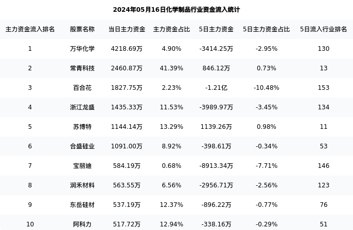 从主力资金流向来看,化学制品行业今日主力资金流入64.93亿元,在所有申万二级行业中排名:99/131。